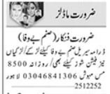 Media Sector invitations purposes for job positions marketed in every day Dunya dated 25 December 2025 for following vacancies in Islamabad, islamabad Islamabad Pakistan.