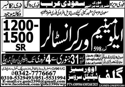 Gulf Abroad Technical Providers jobs commercial dated about 31 January 2026 in each day Specific Newspaper invitations utility for the vacant submit of aluminum employee, aluminum installer and aluminum employee installer in Riyadh, madina Saudi Arabia. Intermediate and Matric and so forth. academic qualification shall be most popular.