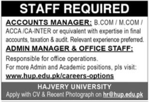 Hajvery College jobs commercial dated about 14 February 2026 in each day Jang Newspaper invitations software for the vacant put up of admin supervisor workplace employees and accounts supervisor in Lahore, lahore Punjab Pakistan. Most popular Training is B.com, M.com, ACCA, Grasp, CA and Bachelor and so forth.