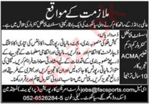 Vacant posts together with assistant finance are introduced in First American Company Pvt Restricted Daska Street Sialkot, sialkot Punjab Pakistan as per 19 January 2026 commercial in each day Jang Newspaper. Individuals with Grasp and ACCA and many others. schooling can apply.