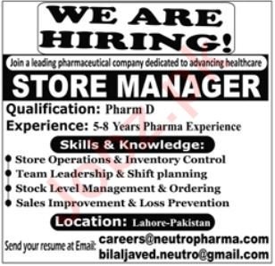 Neutro Pharma Pvt Restricted Lahore, lahore Punjab Pakistan invitations purposes from eligible candidates for the put up of retailer supervisor as per commercial of January 19, 2026 revealed in every day Jang Newspaper. Instructional {qualifications} required Pharma D and many others.