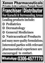 Xenon Prescription drugs Pvt Restricted Karachi, karachi Sindh Pakistan invitations purposes from eligible candidates for the submit of franchiser and distributor as per commercial of January 5, 2026 printed in every day Jang Newspaper. Most popular Training is Others and Intermediate and so on.