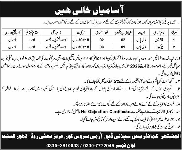 Base Provide Depot Lahore Cantt Jobs 2026 2026 Job Commercial Pakistan