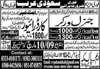M Pak Makkah Manpower Providers invitations purposes for job positions marketed in each day Specific dated 6 March 2026 for following vacancies in Jeddah, dammam Saudi Arabia.
