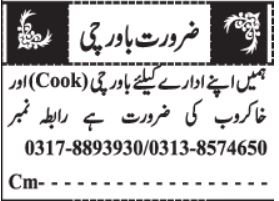 Vacant posts together with bawarchi, prepare dinner, khakrob and sweeper are introduced in Personal Firm Quetta, quetta Balochistan Pakistan as per 15 January 2026 commercial in every day Jang Newspaper. Most popular Schooling is Major and Center and so on.
