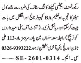 Home - Jobs - Calling Employees Jobs 2026 in Recruitment Company Lahore 2026 Job Commercial Pakistan