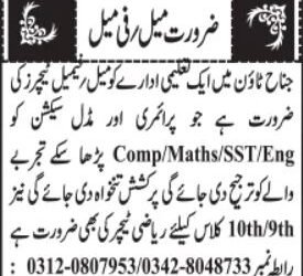 Private School jobs advertisement dated about 8 April 2026 in daily Jang Newspaper invites application for the vacant post of female teacher, english teacher, biology teacher, physics teacher, teacher, chemistry teacher, science teacher and math teacher in Zarghun Road Quetta, quetta Balochistan Pakistan. Preferred Education is Master, M.sc, MA and Bachelor etc.