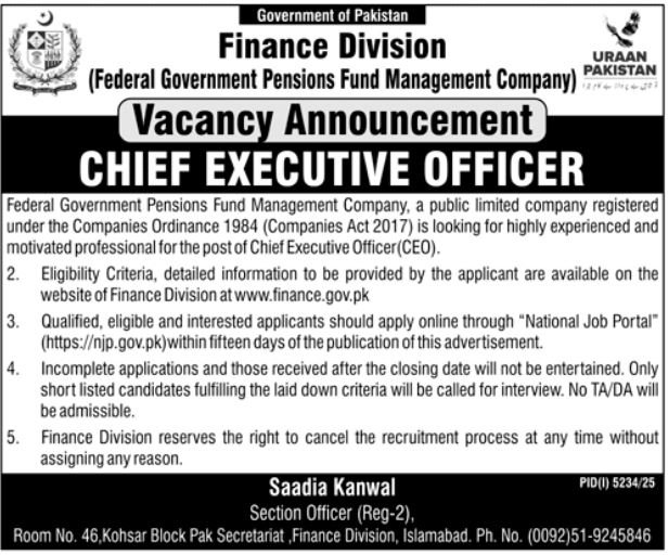 Vacant posts together with chief govt officer are introduced in Finance Division Islamabad, islamabad Islamabad Pakistan as per 29 December 2025 commercial in every day Jang Newspaper. Instructional {qualifications} required Bachelor, Grasp and Others and many others.