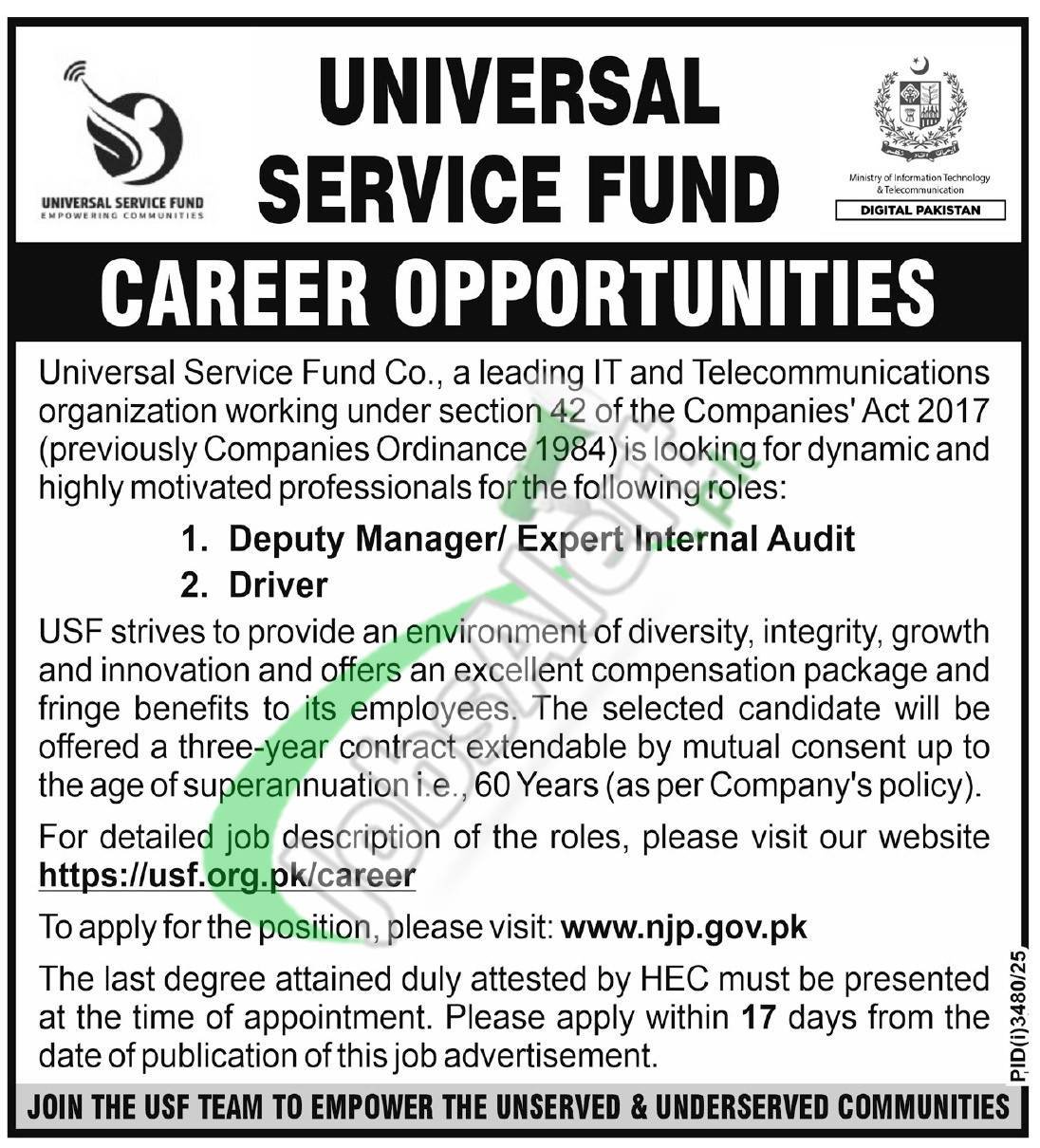 www.usf.org.pk On-line Apply 2025 Common Service Fund Jobs