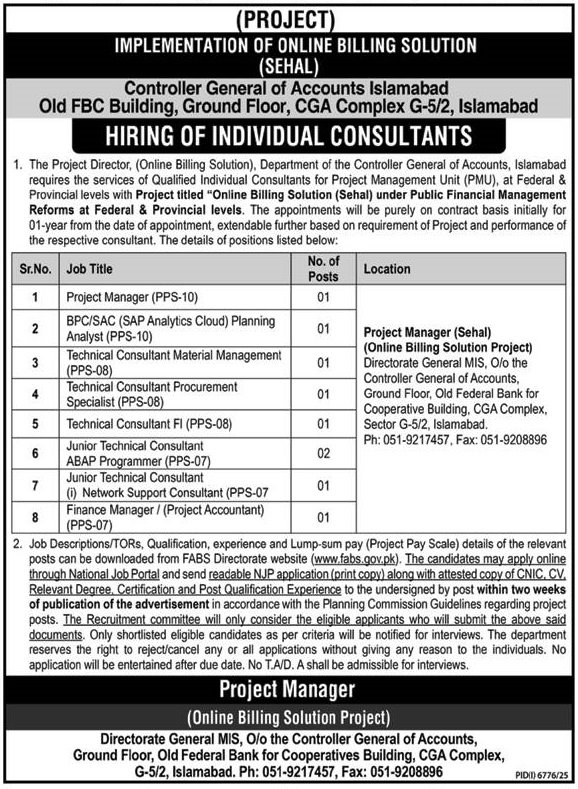 Vacant posts together with undertaking accountant, technical guide fi, technical guide, undertaking supervisor, sac, sap analytics cloud, community help guide, technical guide materials administration, technical guide abap programmer, bpc, planning analyst, abap programmer, technical guide procurement specialist, procurement specialist and finance supervisor are introduced in Controller Basic of Accounts CGA G-5 Islamabad, islamabad Islamabad Pakistan as per 19 February 2026 commercial in every day Nawaiwaqt Newspaper. Academic {qualifications} required Bachelor and Grasp and many others.