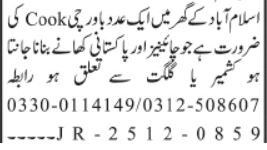 Home jobs commercial dated about 31 December 2025 in every day Jang Newspaper invitations software for the vacant submit of bawarchi, chinese language cook dinner and cook dinner in Islamabad, islamabad Islamabad Pakistan. Candidates with Center and Major and many others. academic background shall be most well-liked.