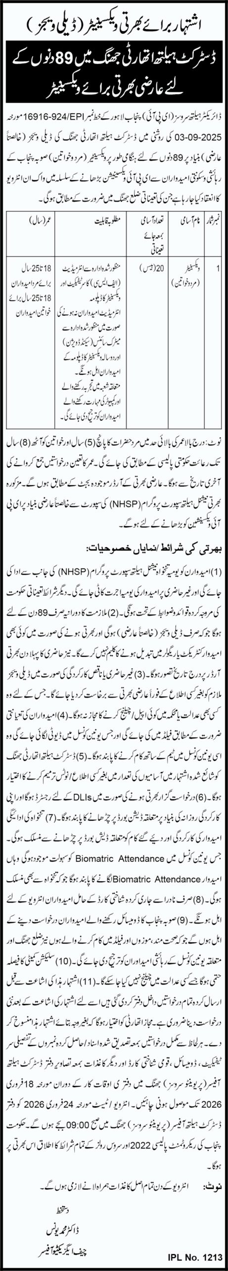 Vacant posts together with vaccinator are introduced in District Well being Authority Jhang, jhang Punjab Pakistan as per 3 February 2026 commercial in every day Different Newspaper. Intermediate and Matric and so forth. instructional qualification might be most well-liked.