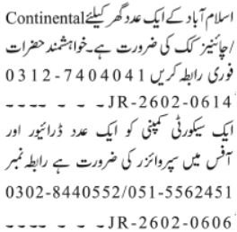 Personal Firm jobs commercial dated about 24 February 2026 in each day Jang Newspaper invitations software for the vacant put up of supervisor, prepare dinner, chinese language prepare dinner and driver in Islamabad, islamabad Islamabad Pakistan. Candidates with Intermediate, Center and Matric and many others. academic background will probably be most popular.