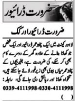Driver & Cook dinner Jobs 2026 in Lahore Cantt 2025 Job Commercial Pakistan