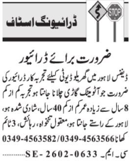 Home jobs commercial dated about 24 February 2026 in day by day Jang Newspaper invitations utility for the vacant publish of home driver, automobile driver and driver in Lahore, lahore Punjab Pakistan. Individuals with Center and Matric and so on. training can apply.