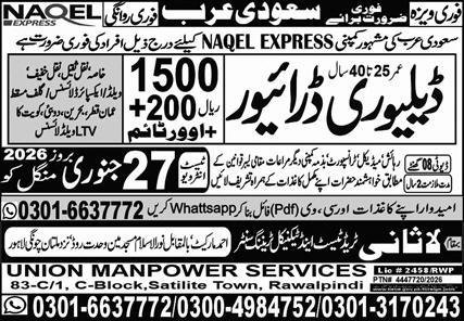 Lasani Commerce Check & Technical Coaching Middle Riyadh, taif Saudi Arabia invitations functions from eligible candidates for the submit of ltv driver, supply driver and driver as per commercial of January 21, 2026 printed in day by day Categorical Newspaper. Most well-liked Schooling is Intermediate and Matric and many others.