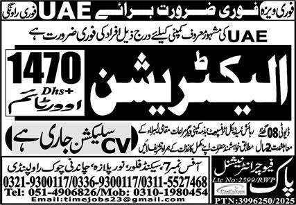 Pak Future Worldwide is in search of candidates for following posts as per job commercial revealed in each day Specific Newspaper of January 9, 2026 for location Abu Dhabi, sharjah UAE: