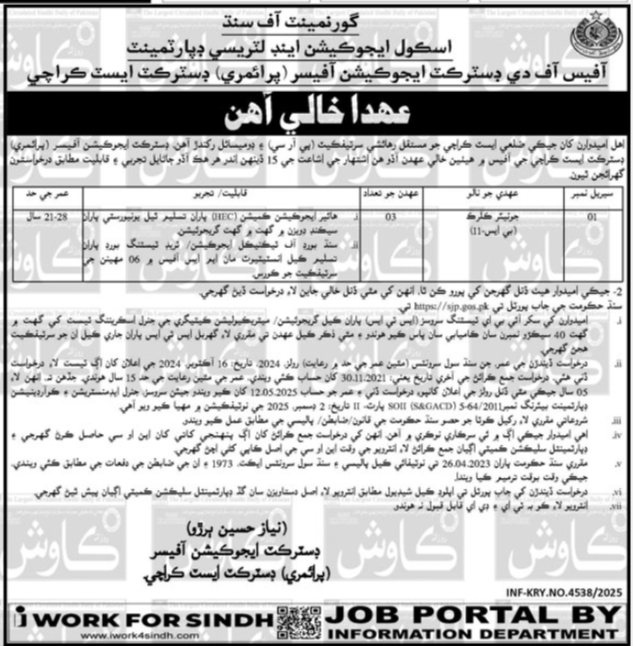 Newest Faculty Schooling & Literacy Division Administration Posts Karachi 2026