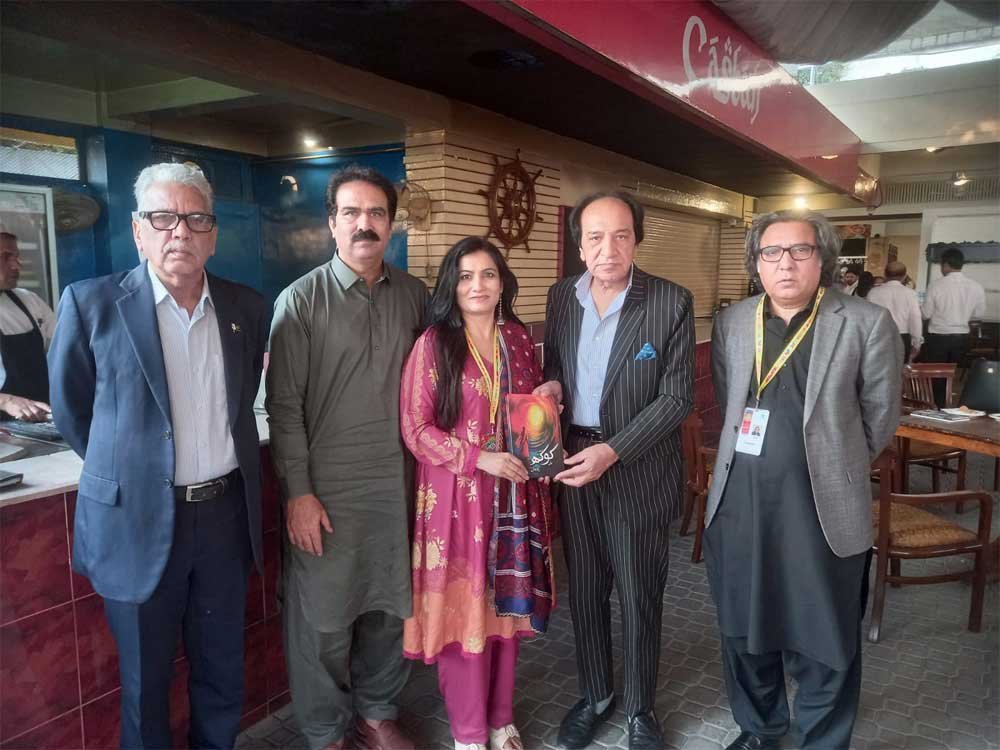 KARACHI: Famend poetess Nanina Adil presents her newest 2nd Novil, “Kokh,” to legendary Pakistani poet and scholar Mahboob Zafar on the Seashore Luxurious Lodge through the seventeenth Karachi Literature Competition. Fazil Jamili, President of the Karachi Press Membership, can be seen within the image. Employees Picture