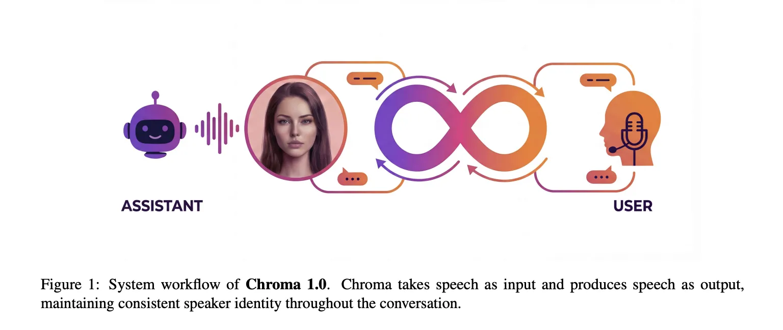 Chroma 1.0 is an actual time speech to speech dialogue mannequin that takes audio as enter and returns audio as output whereas preserving the speaker identification throughout multi flip conversations. It’s offered as the primary open supply finish to finish spoken dialogue system that mixes low latency interplay with excessive constancy customized voice cloning from just a few seconds of reference audio.