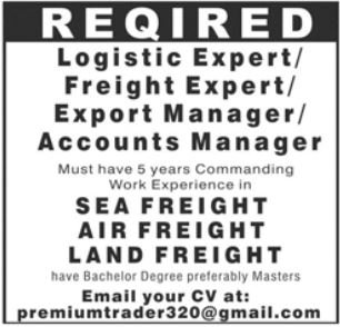 Non-public Firm Multan, multan Punjab Pakistan invitations functions from eligible candidates for the publish of land freight, logistic skilled, freight skilled, export manger, air freight, accounts supervisor and sea freight as per commercial of February 23, 2026 printed in each day Jang Newspaper. Academic {qualifications} required Bachelor and Grasp and so on.