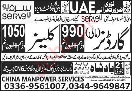 China Manpower Companies UAE, uae UAE invitations purposes from eligible candidates for the submit of cleaners and gardener as per commercial of January 18, 2026 revealed in every day Jang Newspaper. Instructional {qualifications} required Center and Main and so forth.