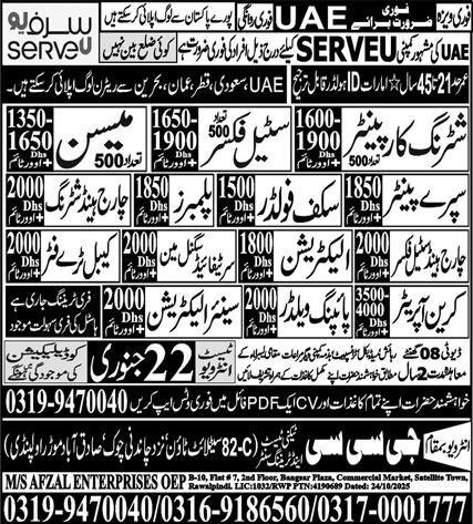 Vacant posts together with Metal Fixer, Spray Painter, Crane Operator, Chargehand Metal Fixer, Plumber, Cable Tray Fitter, Piping Welder, electrician, Chargehand Shuttering, Licensed Sign Man, Electrician, Scaffolder, Mason and Shuttering Carpenter are introduced in GCC Techni Check & Coaching Middle Abu Dhabi, abu dhabi UAE as per 20 January 2026 commercial in day by day Specific Newspaper. Most well-liked Training is Matric, Center and Intermediate and many others.