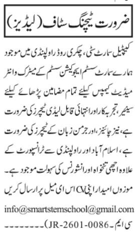 Good Stem Faculty invitations functions for job positions marketed in every day Jang dated 3 January 2026 for following vacancies in Chakri Rawalpindi, rawalpindi Punjab Pakistan.
