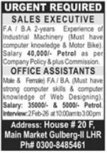 Vacant posts together with workplace assistant and gross sales govt are introduced in Non-public Firm Lahore, lahore Punjab Pakistan as per 1 February 2026 commercial in every day Jang Newspaper. Instructional {qualifications} required Bachelor and Grasp and so on.