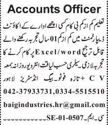 Meals Firm Lahore, lahore Punjab Pakistan invitations purposes from eligible candidates for the publish of accountant and accounts officer as per commercial of January 19, 2026 printed in each day Jang Newspaper. Individuals with B.com and Bachelor and so forth. schooling can apply.