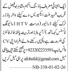 Vacant posts together with htv driver, driver, fireplace fighter and truck driver are introduced in Non-public Firm Shahrah-e-Faisal Karachi, karachi Sindh Pakistan as per 2 February 2026 commercial in every day Jang Newspaper. Instructional {qualifications} required Matric and Center and many others.