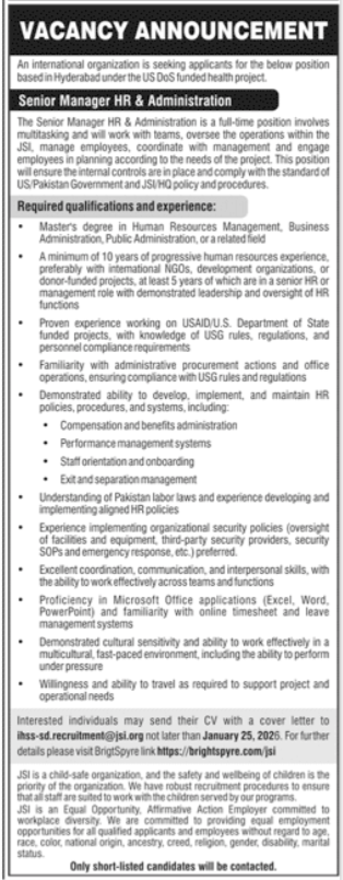 Worldwide Group jobs commercial dated about 11 January 2026 in each day Jang Newspaper invitations utility for the vacant put up of supervisor hr administration in Karachi, karachi Sindh Pakistan. Candidates with Grasp and Bachelor and many others. academic background might be most well-liked.