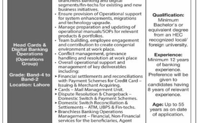 Apply as per details in job advertisement. Login to view further details of how to apply via https://www.jobz.pk online.