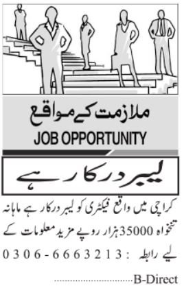Personal Manufacturing unit Karachi, karachi Sindh Pakistan invitations functions from eligible candidates for the submit of labor as per commercial of January 14, 2026 printed in every day Jang Newspaper. Individuals with Center and Matric and many others. training can apply.