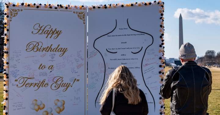 An enormous reproduction of a birthday message allegedly written by U.S. President Donald Trump in 2003 to late convicted intercourse trafficker Jeffrey Epstein appeared on the Nationwide Mall in Washington, D.C.