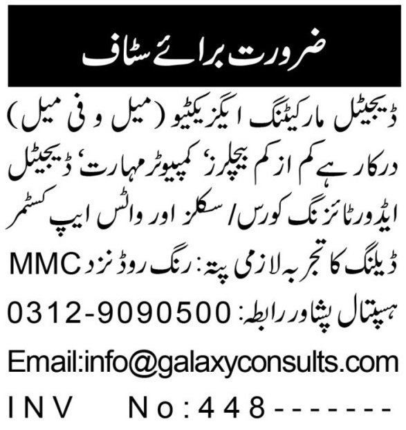 Non-public Firm jobs commercial dated about 9 January 2026 in each day Aaj Newspaper invitations software for the vacant put up of feminine digital advertising government and digital advertising government in Ring Highway Peshawar, peshawar Khyber Pakhtunkhwa KPK Pakistan. Candidates with Bachelor and many others. instructional background can be most popular.
