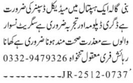 Hospital Clinic invitations functions for job positions marketed in each day Jang dated 26 December 2025 for following vacancies in Bani Gala Islamabad, islamabad Islamabad Pakistan.
