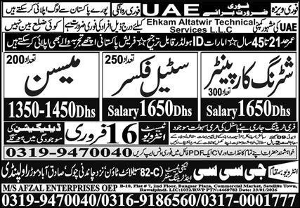 Metal Fixer & Mason Jobs 2026 in UAE 2026 Job Commercial Pakistan