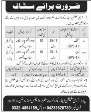 Vacant posts together with cook dinner and mali are introduced in Military Choice & Recruitment Centre Lahore, lahore Punjab Pakistan as per 23 February 2026 commercial in day by day Ausaf Newspaper. Major, Center and Matric and many others. instructional qualification can be most well-liked.