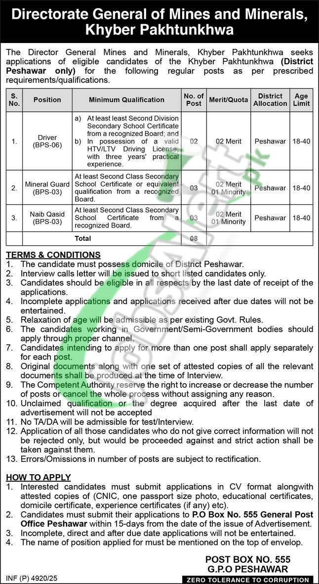 Minerals Development Department KPK JobsFinal Date to Apply: December 06, 2025