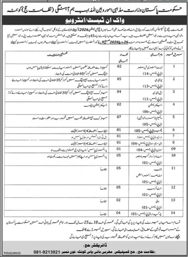 Ministry of Spiritual Affairs & Interfaith Concord invitations purposes for job positions marketed in each day Jang dated 6 March 2026 for following vacancies in Quetta, quetta Balochistan Pakistan.