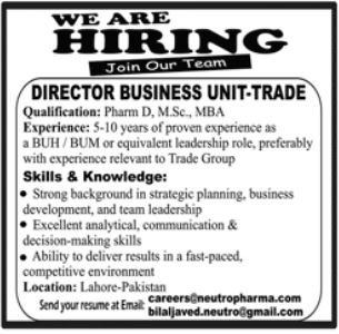 Vacant posts together with director enterprise unit are introduced in Neutro Pharma Pvt Restricted Lahore, lahore Punjab Pakistan as per 2 February 2026 commercial in day by day Jang Newspaper. Candidates with M.sc, MS, Grasp, Bachelor and MBA and so on. instructional background will likely be most popular.