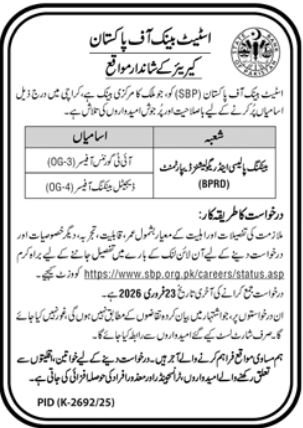 Vacant posts together with digital banking officer and it governance officer are introduced in State Financial institution of Pakistan SBP Karachi, karachi Sindh Pakistan as per 12 February 2026 commercial in each day Jang Newspaper. Individuals with Grasp and Bachelor and so forth. schooling can apply.