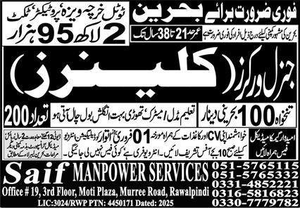 Vacant posts together with common employee and cleaner are introduced in Saif Manpower Companies Bahrain, bahrain Bahrain as per 31 January 2026 commercial in day by day Categorical Newspaper. Most popular Schooling is Matric and Center and so forth.