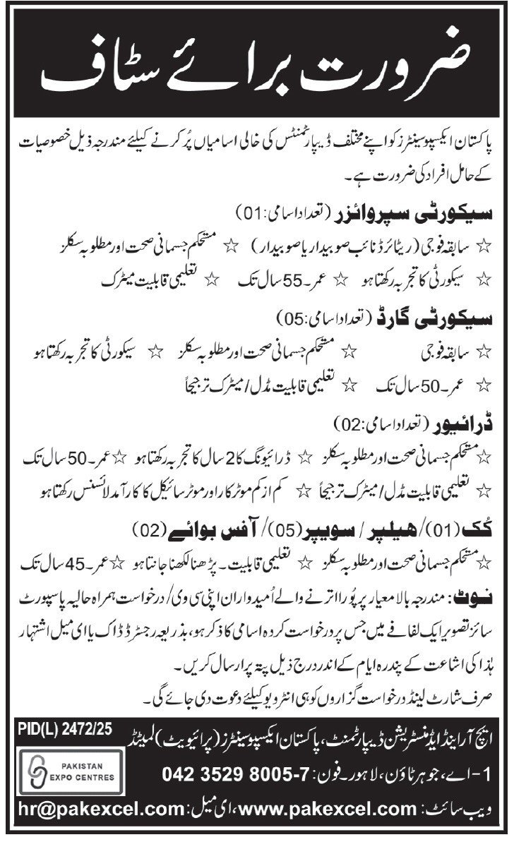 Pakistan Expo Centres Pvt Ltd is on the lookout for candidates for following posts as per job commercial revealed in day by day Specific Tribune Newspaper of March 10, 2026 for location Johar City Lahore, lahore Punjab Pakistan: