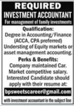 Personal Firm Karachi, karachi Sindh Pakistan invitations purposes from eligible candidates for the put up of funding accountant as per commercial of December 28, 2025 printed in each day Jang Newspaper. MS, Grasp and Bachelor and many others. academic qualification will likely be most well-liked.