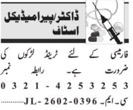 Pharmacy Lahore, lahore Punjab Pakistan invitations functions from eligible candidates for the put up of pharmacy salesman and pharmacy technician as per commercial of February 17, 2026 printed in every day Jang Newspaper. Candidates with Intermediate and Matric and so on. instructional background can be most well-liked.