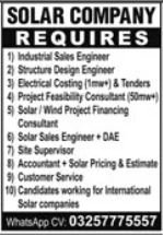 Photo voltaic Firm invitations functions for job positions marketed in day by day Jang dated 11 January 2026 for following vacancies in Karachi, karachi Sindh Pakistan.
