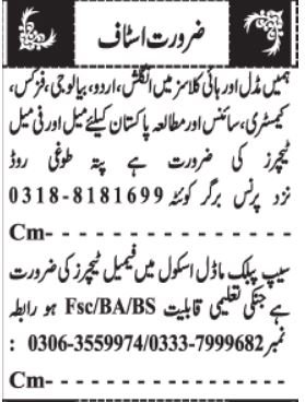 Personal College Toghi Highway Quetta, quetta Balochistan Pakistan invitations purposes from eligible candidates for the submit of pakistan examine instructor, science instructor, english instructor, feminine instructor, urdu instructor, chemistry instructor, biology instructor and physics instructor as per commercial of February 26, 2026 revealed in each day Jang Newspaper. Individuals with Bachelor, BA and Grasp and so on. training can apply.