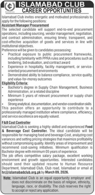 Vacant posts together with fb value controller and assistant supervisor procurement are introduced in Islamabad Membership Islamabad, islamabad Islamabad Pakistan as per 25 February 2026 commercial in day by day Jang Newspaper. Bachelor and so forth. instructional qualification might be most popular.